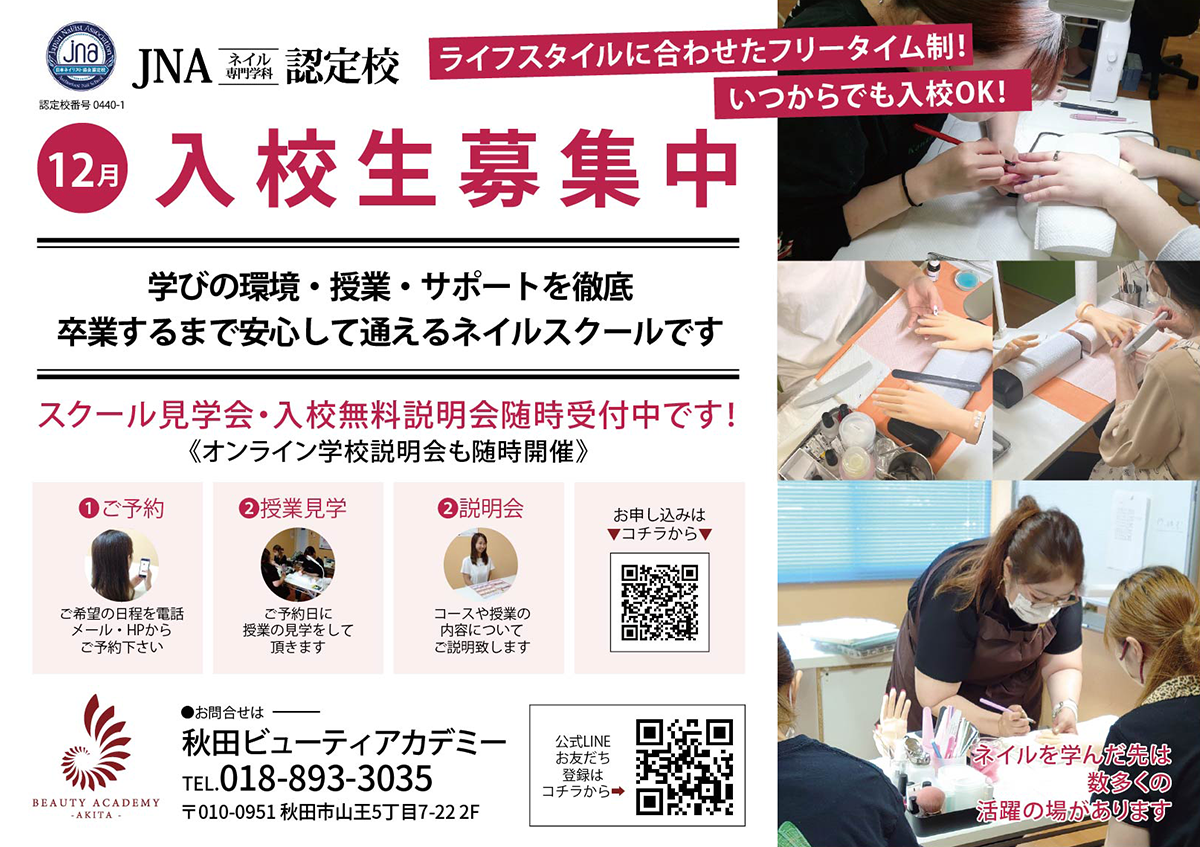 資 格:秋田ビューティアカデミー在校生・卒業生